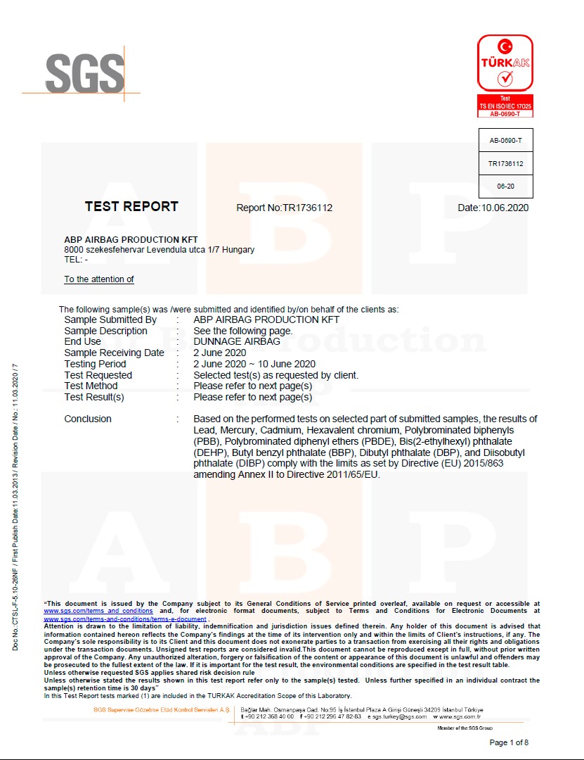 ABP Airbag Production Ltd. è un'azienda dinamica e riconosciuta a livello internazionale, specializzata nella produzione e distribuzione di airbag da stivaggio e altre soluzioni per la messa in sicurezza del carico.
